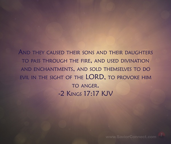 And they caused their sons and their daughters to pass through the fire, and used divination and enchantments, and sold themselves to do evil in the sight of the LORD, to provoke him to anger. -2 Kings 17:17 KJV