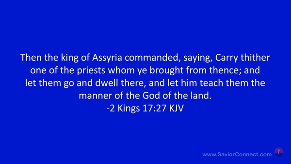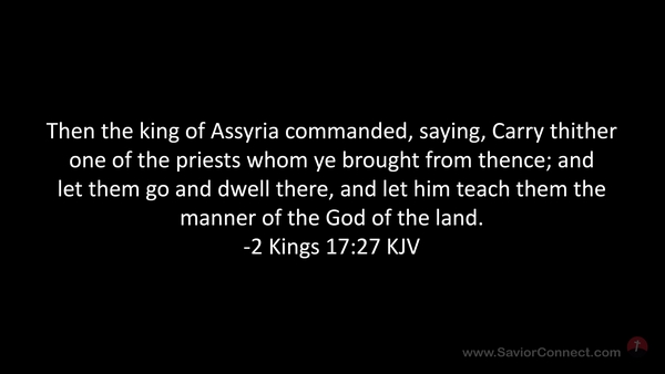 Then the king of Assyria commanded, saying, Carry thither one of the priests whom ye brought from thence; and let them go and dwell there, and let him teach them the manner of the God of the land. -2 Kings 17:27 KJV