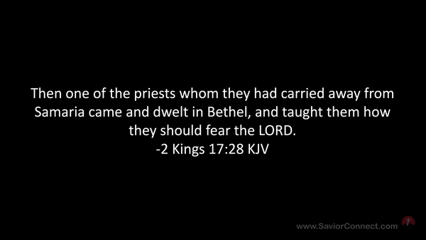 Then one of the priests whom they had carried away from Samaria came and dwelt in Bethel, and taught them how they should fear the LORD. -2 Kings 17:28 KJV