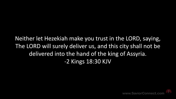 Neither let Hezekiah make you trust in the LORD, saying, The LORD will surely deliver us, and this city shall not be delivered into the hand of the king of Assyria. -2 Kings 18:30 KJV