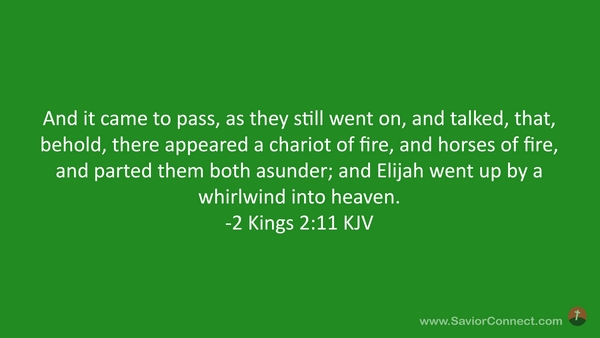And it came to pass, as they still went on, and talked, that, behold, there appeared a chariot of fire, and horses of fire, and parted them both asunder; and Elijah went up by a whirlwind into heaven. -2 Kings 2:11 KJV