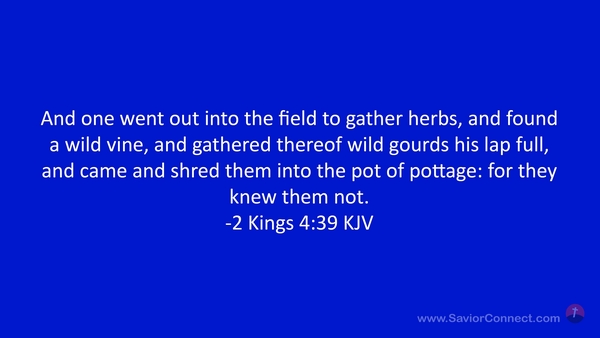 And one went out into the field to gather herbs, and found a wild vine, and gathered thereof wild gourds his lap full, and came and shred them into the pot of pottage: for they knew them not. -2 Kings 4:39 KJV