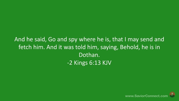 And he said, Go and spy where he is, that I may send and fetch him. And it was told him, saying, Behold, he is in Dothan. -2 Kings 6:13 KJV