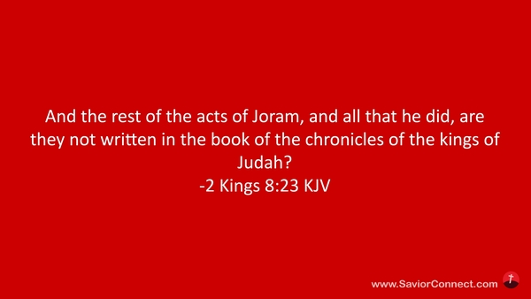 And the rest of the acts of Joram, and all that he did, are they not written in the book of the chronicles of the kings of Judah? -2 Kings 8:23 KJV