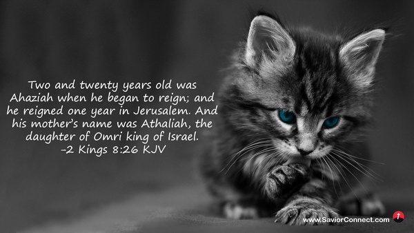 Two and twenty years old was Ahaziah when he began to reign; and he reigned one year in Jerusalem. And his mother's name was Athaliah, the daughter of Omri king of Israel. -2 Kings 8:26 KJV