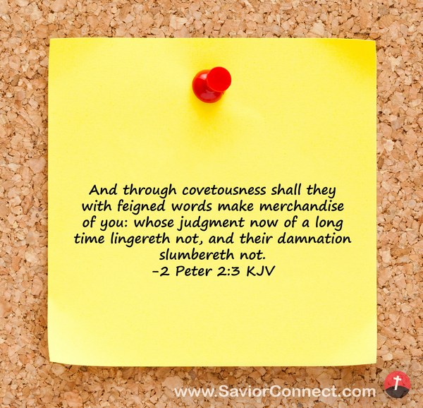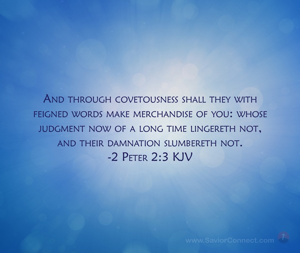 And through covetousness shall they with feigned words make merchandise of you: whose judgment now of a long time lingereth not, and their damnation slumbereth not. -2 Peter 2:3 KJV