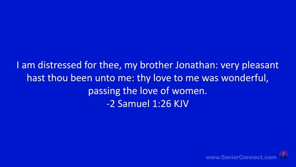 I am distressed for thee, my brother Jonathan: very pleasant hast thou been unto me: thy love to me was wonderful, passing the love of women. -2 Samuel 1:26 KJV