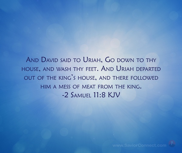 And David said to Uriah, Go down to thy house, and wash thy feet. And Uriah departed out of the king's house, and there followed him a mess of meat from the king. -2 Samuel 11:8 KJV