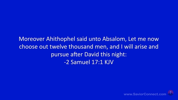 Moreover Ahithophel said unto Absalom, Let me now choose out twelve thousand men, and I will arise and pursue after David this night: -2 Samuel 17:1 KJV