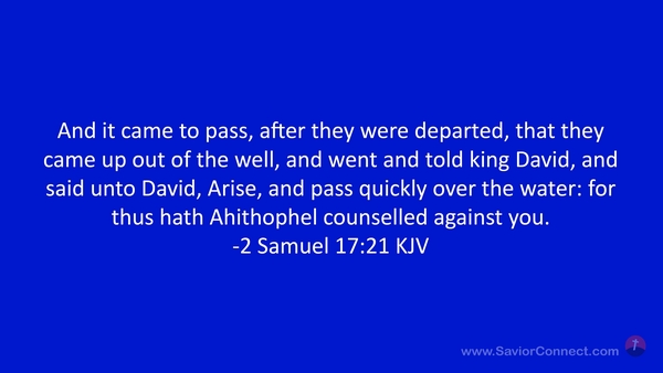 And it came to pass, after they were departed, that they came up out of the well, and went and told king David, and said unto David, Arise, and pass quickly over the water: for thus hath Ahithophel counselled against you. -2 Samuel 17:21 KJV