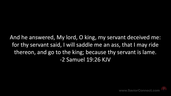 And he answered, My lord, O king, my servant deceived me: for thy servant said, I will saddle me an ass, that I may ride thereon, and go to the king; because thy servant is lame. -2 Samuel 19:26 KJV