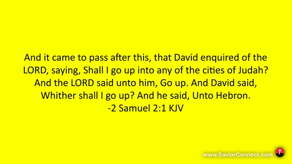 And it came to pass after this, that David enquired of the LORD, saying, Shall I go up into any of the cities of Judah? And the LORD said unto him, Go up. And David said, Whither shall I go up? And he said, Unto Hebron. -2 Samuel 2:1 KJV