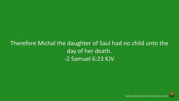 Therefore Michal the daughter of Saul had no child unto the day of her death. -2 Samuel 6:23 KJV