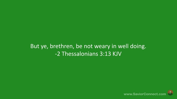 But ye, brethren, be not weary in well doing. -2 Thessalonians 3:13 KJV