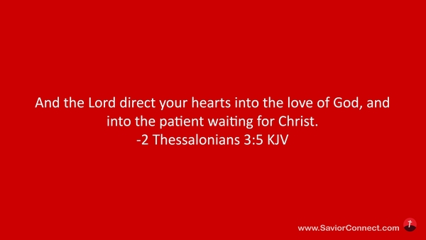And the Lord direct your hearts into the love of God, and into the patient waiting for Christ. -2 Thessalonians 3:5 KJV