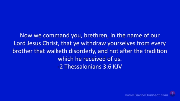 Now we command you, brethren, in the name of our Lord Jesus Christ, that ye withdraw yourselves from every brother that walketh disorderly, and not after the tradition which he received of us. -2 Thessalonians 3:6 KJV