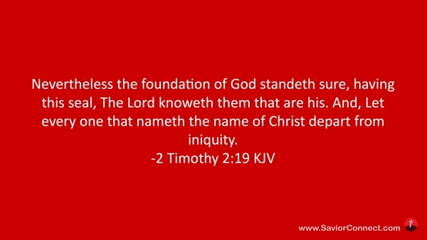 Nevertheless the foundation of God standeth sure, having this seal, The Lord knoweth them that are his. And, Let every one that nameth the name of Christ depart from iniquity. -2 Timothy 2:19 KJV