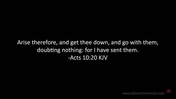 Arise therefore, and get thee down, and go with them, doubting nothing: for I have sent them. -Acts 10:20 KJV