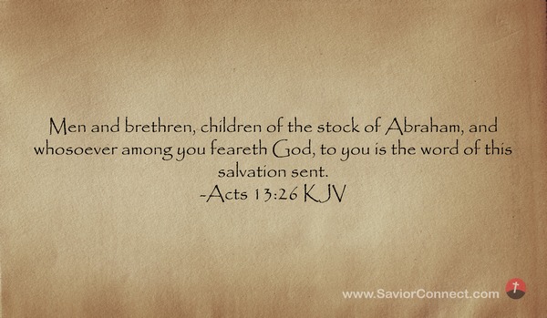 Men and brethren, children of the stock of Abraham, and whosoever among you feareth God, to you is the word of this salvation sent. -Acts 13:26 KJV