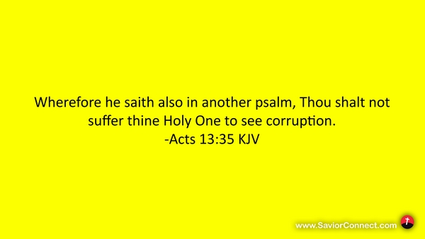 Wherefore he saith also in another psalm, Thou shalt not suffer thine Holy One to see corruption. -Acts 13:35 KJV