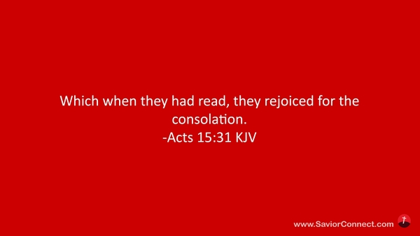 Which when they had read, they rejoiced for the consolation. -Acts 15:31 KJV