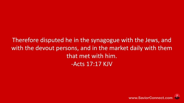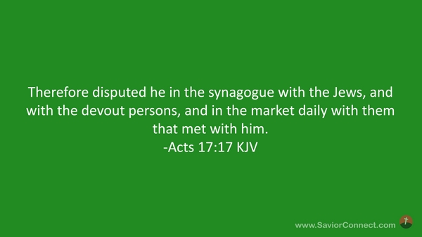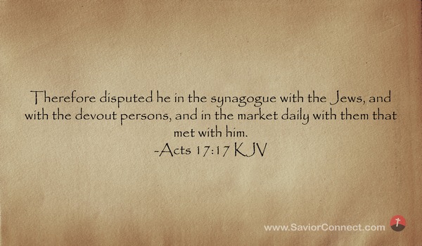 Therefore disputed he in the synagogue with the Jews, and with the devout persons, and in the market daily with them that met with him. -Acts 17:17 KJV
