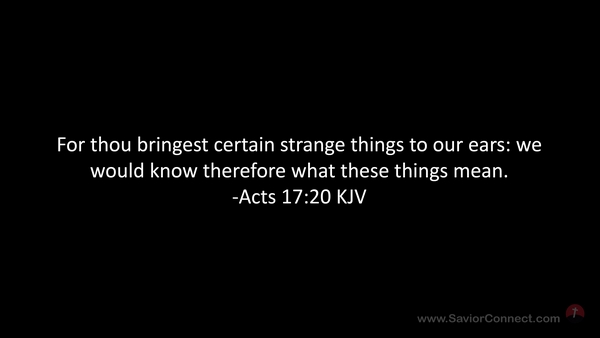 For thou bringest certain strange things to our ears: we would know therefore what these things mean. -Acts 17:20 KJV