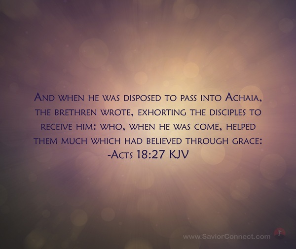 And when he was disposed to pass into Achaia, the brethren wrote, exhorting the disciples to receive him: who, when he was come, helped them much which had believed through grace: -Acts 18:27 KJV