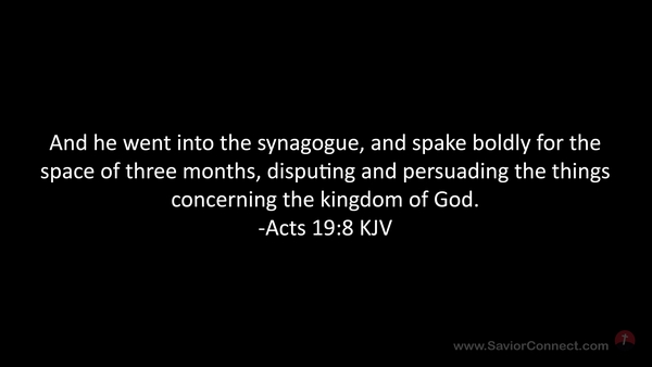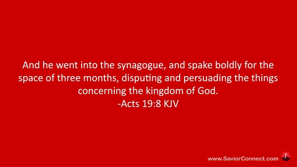 And he went into the synagogue, and spake boldly for the space of three months, disputing and persuading the things concerning the kingdom of God. -Acts 19:8 KJV