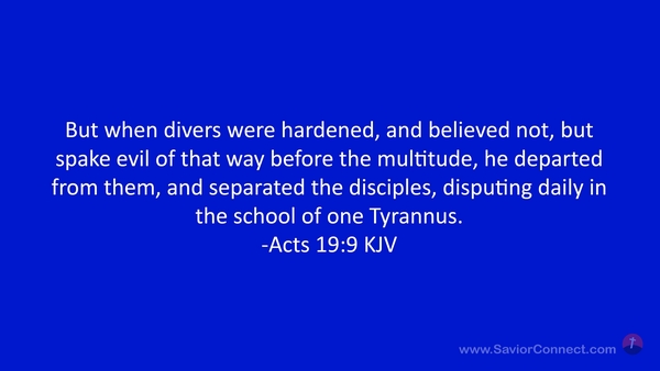 But when divers were hardened, and believed not, but spake evil of that way before the multitude, he departed from them, and separated the disciples, disputing daily in the school of one Tyrannus. -Acts 19:9 KJV