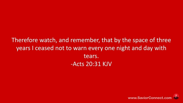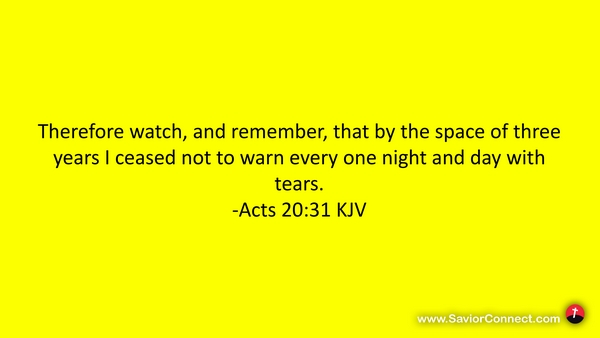 Therefore watch, and remember, that by the space of three years I ceased not to warn every one night and day with tears. -Acts 20:31 KJV