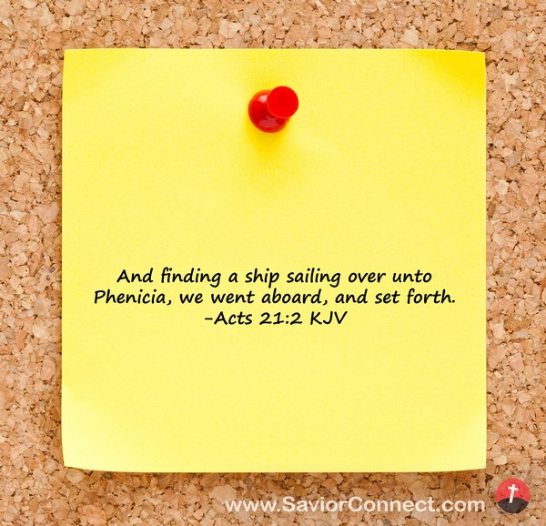 And finding a ship sailing over unto Phenicia, we went aboard, and set forth. -Acts 21:2 KJV