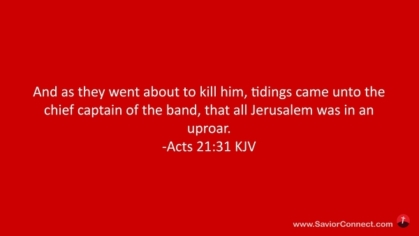 And as they went about to kill him, tidings came unto the chief captain of the band, that all Jerusalem was in an uproar. -Acts 21:31 KJV