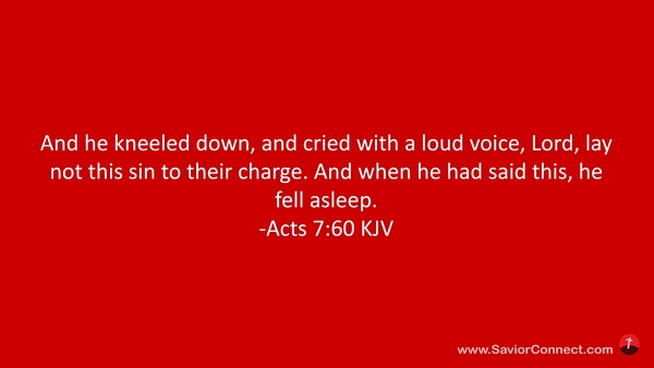 And he kneeled down, and cried with a loud voice, Lord, lay not this sin to their charge. And when he had said this, he fell asleep. -Acts 7:60 KJV