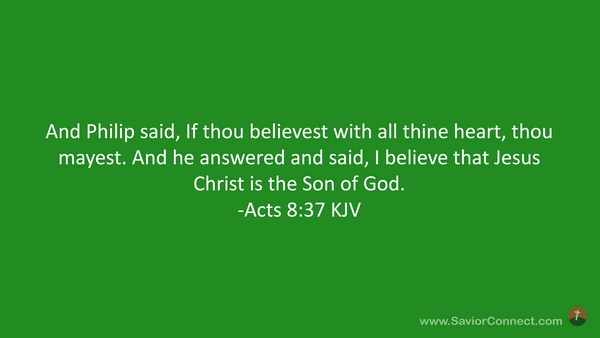 And Philip said, If thou believest with all thine heart, thou mayest. And he answered and said, I believe that Jesus Christ is the Son of God. -Acts 8:37 KJV