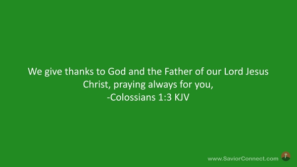 We give thanks to God and the Father of our Lord Jesus Christ, praying always for you, -Colossians 1:3 KJV