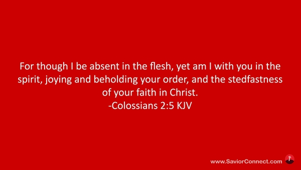 For though I be absent in the flesh, yet am I with you in the spirit, joying and beholding your order, and the stedfastness of your faith in Christ. -Colossians 2:5 KJV