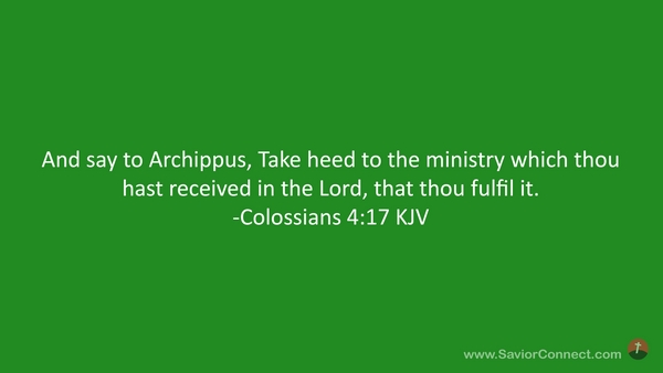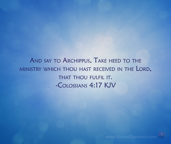 And say to Archippus, Take heed to the ministry which thou hast received in the Lord, that thou fulfil it. -Colossians 4:17 KJV