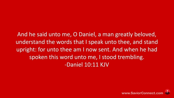 And he said unto me, O Daniel, a man greatly beloved, understand the words that I speak unto thee, and stand upright: for unto thee am I now sent. And when he had spoken this word unto me, I stood trembling. -Daniel 10:11 KJV