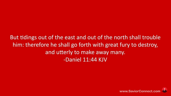 But tidings out of the east and out of the north shall trouble him: therefore he shall go forth with great fury to destroy, and utterly to make away many. -Daniel 11:44 KJV
