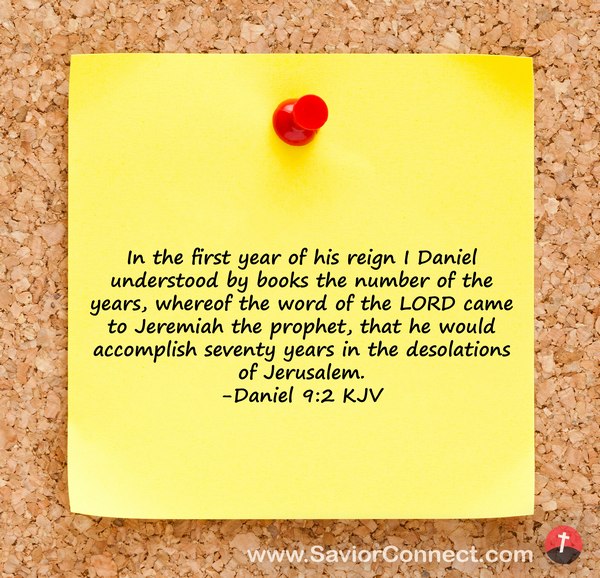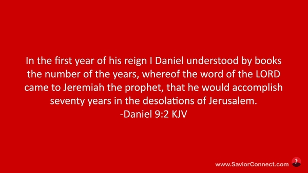 In the first year of his reign I Daniel understood by books the number of the years, whereof the word of the LORD came to Jeremiah the prophet, that he would accomplish seventy years in the desolations of Jerusalem. -Daniel 9:2 KJV