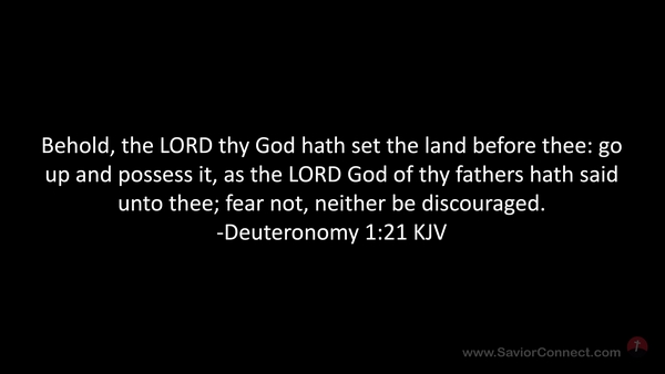 Behold, the LORD thy God hath set the land before thee: go up and possess it, as the LORD God of thy fathers hath said unto thee; fear not, neither be discouraged. -Deuteronomy 1:21 KJV