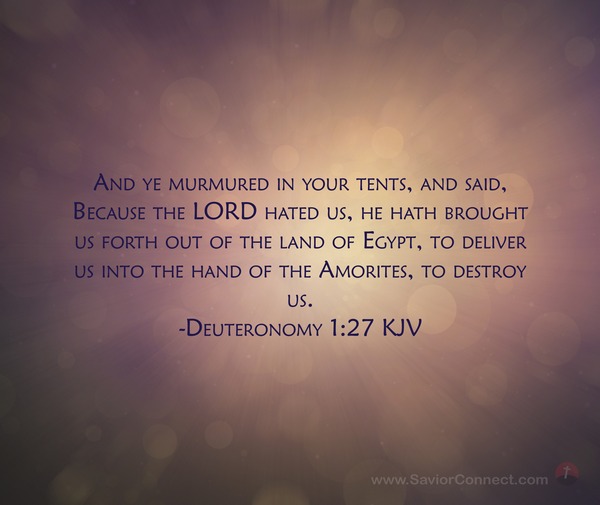 And ye murmured in your tents, and said, Because the LORD hated us, he hath brought us forth out of the land of Egypt, to deliver us into the hand of the Amorites, to destroy us. -Deuteronomy 1:27 KJV