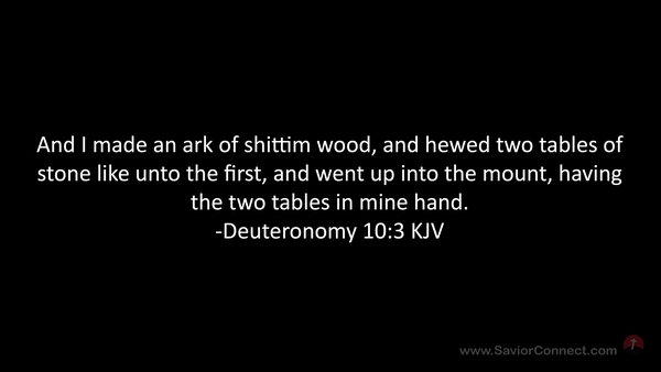 And I made an ark of shittim wood, and hewed two tables of stone like unto the first, and went up into the mount, having the two tables in mine hand. -Deuteronomy 10:3 KJV