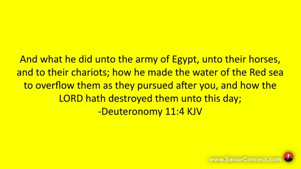 And what he did unto the army of Egypt, unto their horses, and to their chariots; how he made the water of the Red sea to overflow them as they pursued after you, and how the LORD hath destroyed them unto this day; -Deuteronomy 11:4 KJV