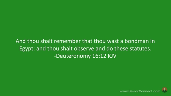 And thou shalt remember that thou wast a bondman in Egypt: and thou shalt observe and do these statutes. -Deuteronomy 16:12 KJV