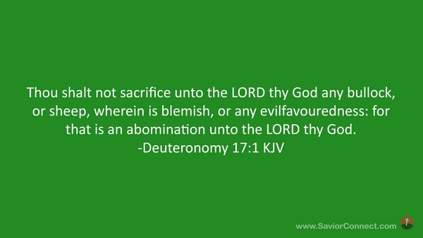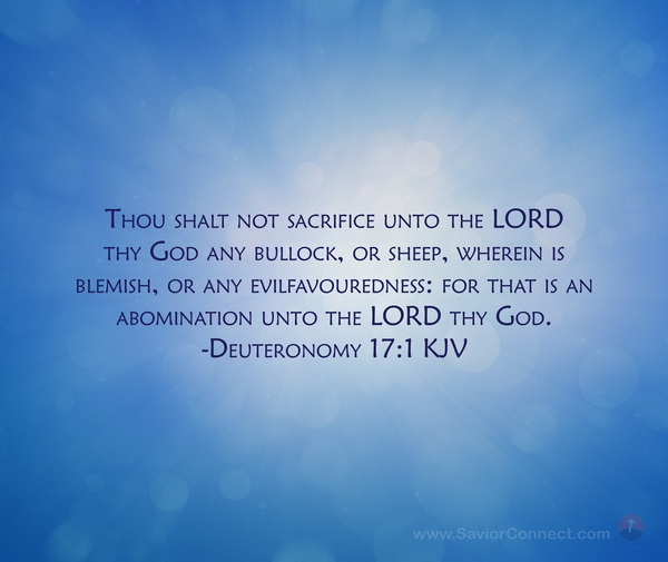 Thou shalt not sacrifice unto the LORD thy God any bullock, or sheep, wherein is blemish, or any evilfavouredness: for that is an abomination unto the LORD thy God. -Deuteronomy 17:1 KJV