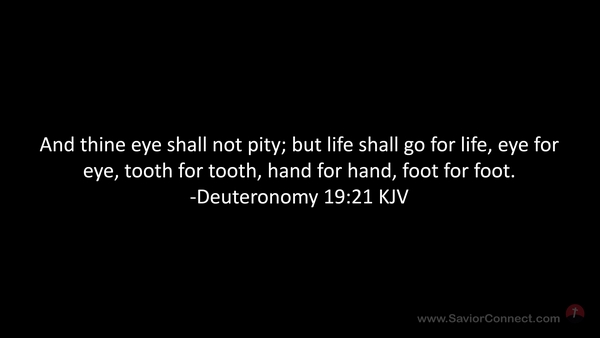 And thine eye shall not pity; but life shall go for life, eye for eye, tooth for tooth, hand for hand, foot for foot. -Deuteronomy 19:21 KJV