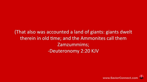 (That also was accounted a land of giants: giants dwelt therein in old time; and the Ammonites call them Zamzummims; -Deuteronomy 2:20 KJV
