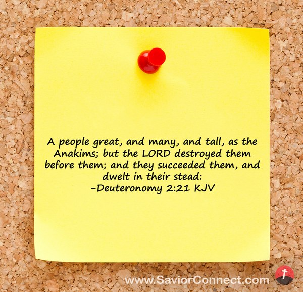 A people great, and many, and tall, as the Anakims; but the LORD destroyed them before them; and they succeeded them, and dwelt in their stead: -Deuteronomy 2:21 KJV
